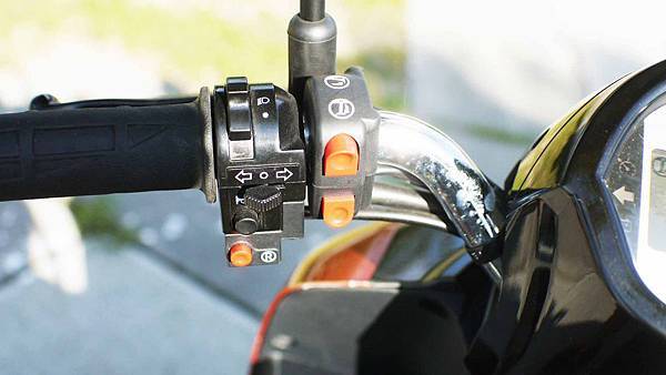 右方的紅色按鈕就是自動駐車架,與BMW重機採用同級配備,